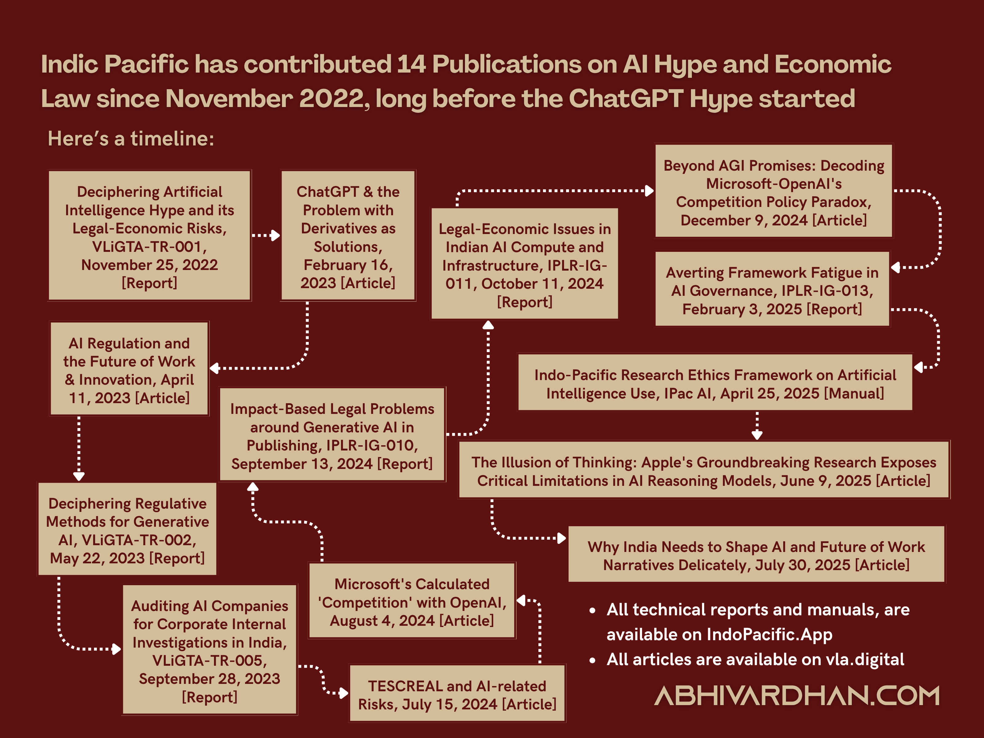 So, Indic Pacific Legal Research is the only or among India's few research & consulting firms, which has published 14 works (6 reports, 1 manual, 7 articles) since November 2022 until August 2025 on AI Hype and Economic Law. This is historic not because of the number of publications in this niche.